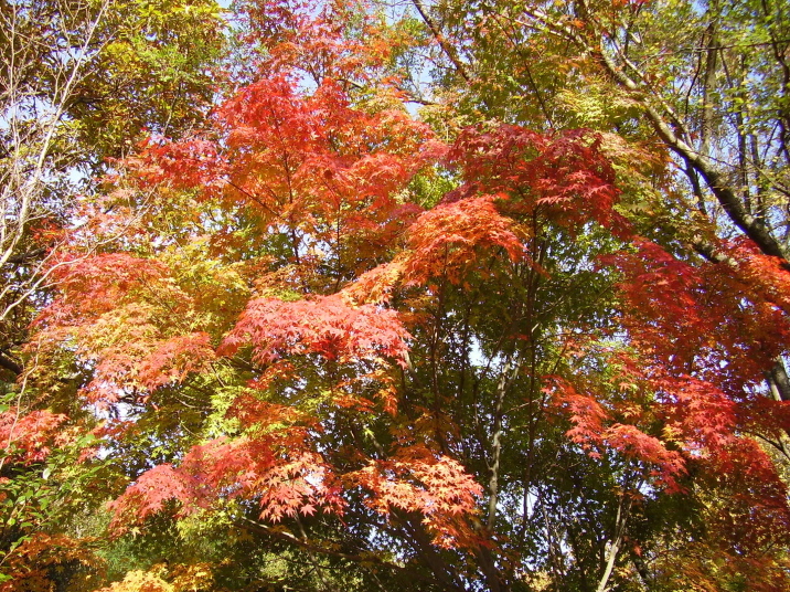 生駒山隣の大原山(ぼくらの広場)に登り、そこから生駒山ハイキング道頂上付近に出て、 元の平岡公園芝の無料駐車場に戻るコースで紅葉の写真を撮りに出かけました。 まだ紅葉には早かったのですが、山頂付近の木は赤くなっていました。 風と太陽が強く当たる所のモミジが、一番色が良いようだ。 風当たりを避けて陽の当たり難い所に好んで居る、なまぬるい自分に反省。 森のレストハウス前の紅葉。 ぼくらの広場・森のレストハウスより南側を向き、信貴山、二上山、金剛山を望む。 大原山山上付近の紅葉 |