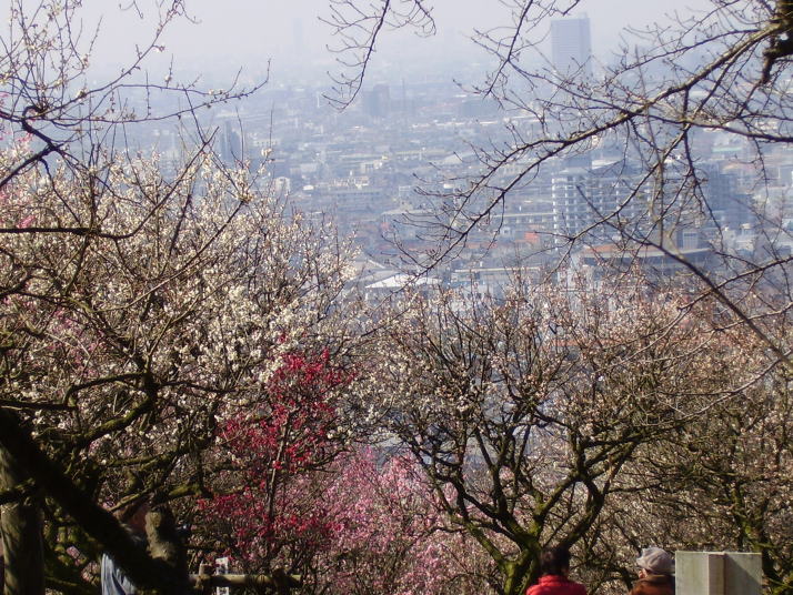 平岡梅林からぼくらの広場、鳴川峠、千光寺、萩の台をへて矢田丘陵の追分梅林、霊山寺から近鉄富雄まで歩く。 暖かい日で平岡梅林は人出が多く、梅も大分咲いていました。晴天に白い梅がさえてとても綺麗でした。 東大阪市の町並みを背景に赤・白・ピンクの梅を見る何組ものお年寄りのご夫婦が、会話をしながら弁当を食べ、 仲むつましく梅見をされていました。夫婦と言うより人生の戦場を一緒に渡って来た戦友と云う所でしょうか。 平岡梅林から南展望台に登り、そこから「府民の森・ぼくらの広場」大原山に着く。平岡梅林から約1時間。 大原山から尾根道を南に約15分歩き鳴川峠に着き、そこから奈良側(東)に30分位下った所の千光寺に出ます。 役の行者の由来のお寺で、滝行でも有名です。 千光寺から道なりに下り、広域農道を左に折れてかなり歩くと道が二股になった 所に自動販売機がある、先程の集落で小母さんが、右.元山上駅、左.東山駅 と言っていたので左をとる。東山駅の少し手前に左に曲がる道があり、南生駒 の方に行きたかったのでそこを曲がると萩の台霊園の前に出た。 そして南生駒から矢田丘陵に入る旧奈良街道を目指し斜めに人に聞きながら 進む、子供の森・追分方面看板に従い右折する。老人ホームを過ぎしばらく 歩くと道が狭くなり旧街道らしくなって来て上りきったら左追分の石票あり そこを左に行き、集落の中を下って行くと追分の本陣が右手に見えます。 追分本陣は旧奈良街道沿いにあり、お殿様や大名が休憩や宿泊をされた所です。 左下に売店が写っています、食べる物やお土産になる物が売っています。 本陣の角を左に曲がると追分梅林が見え、後ろに第二阪奈道路が通っています。 白梅と紅梅が区分して植えています。 追分梅林を下って左に行くと霊山寺(りょうせんじ)に出ます。 前の川筋を北に30分程歩いて近鉄・富雄駅に着く。 あ〜あ、しんどかった! |