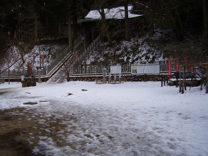 9時50分頃車で家を出発、大和川沿いに外環状線に出て河内長野方面に右折する。 富田林駅付近に千早赤阪方面の道路標識あり、そこを左折し道標に従って千早赤阪村へ。 登山口のバス停の隣にある民間の駐車場に止めて、25年ぶりに金剛山に11時頃から登り始める。 登り始めてすぐに「頂上はもうすぐですかね」と下山者に聞く、3回目に聞いた人に「もうちょっと 登ると半分の所に着きますよ。」と言われ、そこにウルトラマンとバルタン星人が居りました。 「人生も山も苦しみも喜びもあと半分」なんと含蓄のある深い言葉でしょうか?ウルトラマン有難う。 途中から雪が積もっていて、アイゼンを持って来ていなかったので滑って大変でした。 やっと金剛山山上付近の広場に12時15分頃着き弁当を食べる。気温は0度。 1万回以上の平野さんを筆頭に、9千回以上の2人等、沢山の名前が掲げてありました。 一ノ鳥居、経塚、展望台、香楠荘、伏見峠につながる道 夫婦杉まで行くと坂が急になり、アイゼンがないと滑って危険なので引き戻す。 広場の隣にある転法輪寺(左)と葛木神社(右)下って右が転法輪寺 金剛山の頂上より富田林市や大阪平野を望む。 六甲山(正面奥)や大阪湾(左上)も見えます。 同じ道で千早赤坂村の駐車場に戻り帰宅する。 |