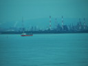 ホテルからの夕暮れの景色と夜景の水島コンビナート。