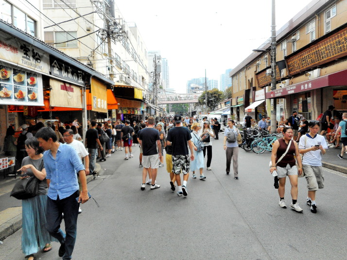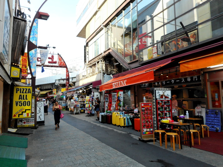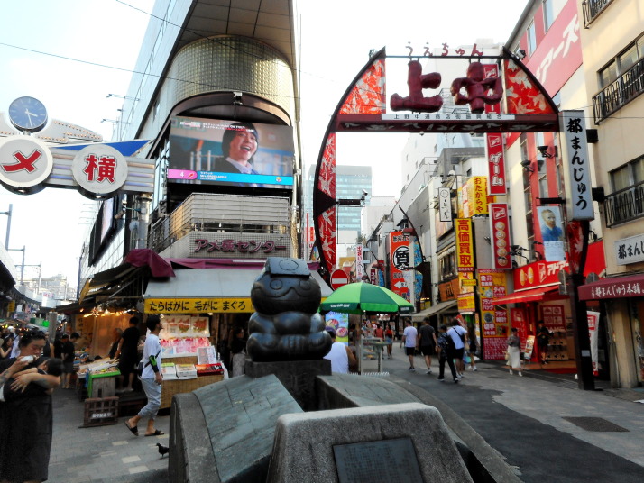 上野駅の高架の北側に伸びている商店街がアメ横です。