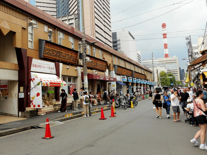 [日比谷線]に乗り『茅場町駅』へ、[東西線]で『門前仲町駅』、[大江戸線]に乗り換え『築地市場前駅』へ