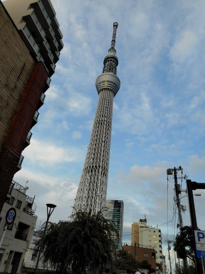 浅草寺本堂から駅に戻らず東側を向いて少し歩くと、スカイツリーが目の前に見えてくる。