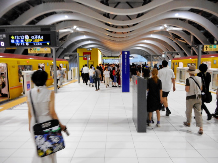 [ゆりかもめ]で[有楽町線]の『豊洲駅』まで戻り、[有楽町線]で『月島駅』へ。そこで[大江戸線]に乗り換え