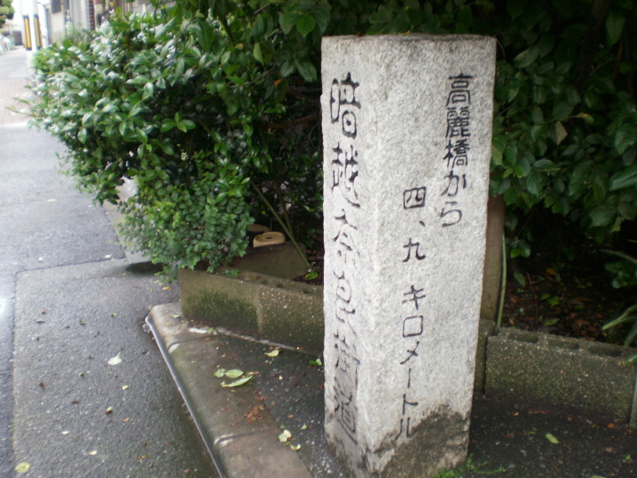 石の道標を右に曲がる。外環状線の上の陸橋を渡る。