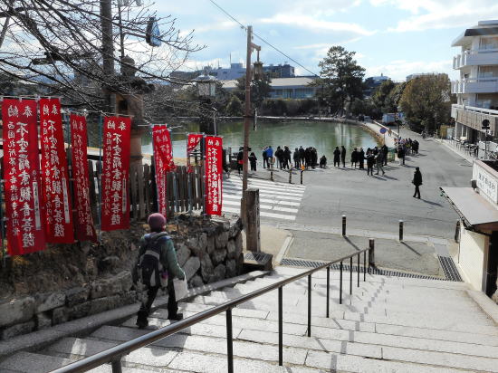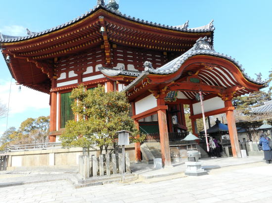 猿沢の池が凍っていて鳥が寒さで固まっている。左手後ろに奈良ホテルが有るはずだ
